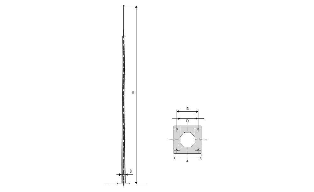Молниеотвод модели НФГ?14 ? это защитная конструкция, сделанная на базе несиловой фланцевой гранёной опоры. Общая высота от уровня земли до верхушки штыря молниеприёмника составляет 14 метров. Несиловые опоры имеют малую материалоёмкость, поэтому их стоимость ниже аналогов. Это позволяет сэкономить на защите объекта без ухудшения качества.